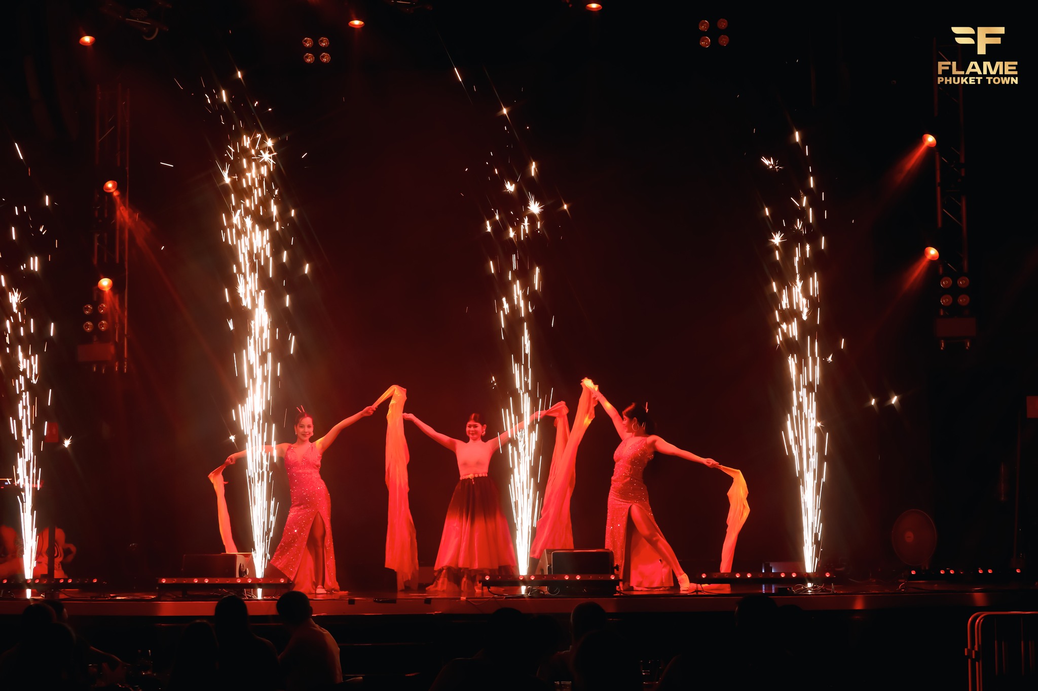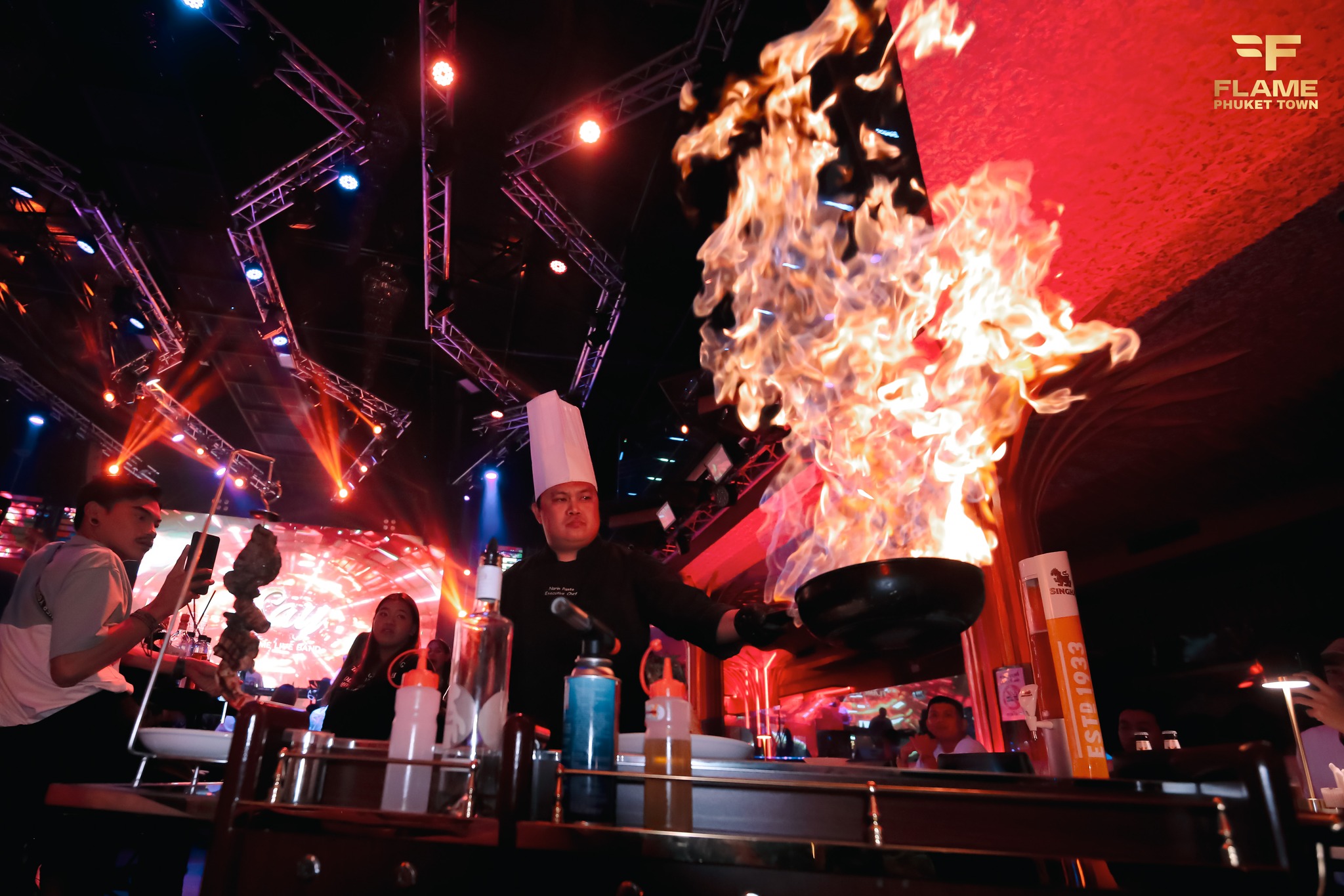 Immerse yourself in a unique dining experience that harmoniously combines exquisite culinary arts with captivating live performances. Located in Phuket Town, our establishment is perfect for food enthusiasts and those who appreciate vibrant live entertainment nights filled with live music and mesmerizing performances. From our tantalizing menu to our world-class shows every detail at Flame is crafted to ignite a memorable evening.